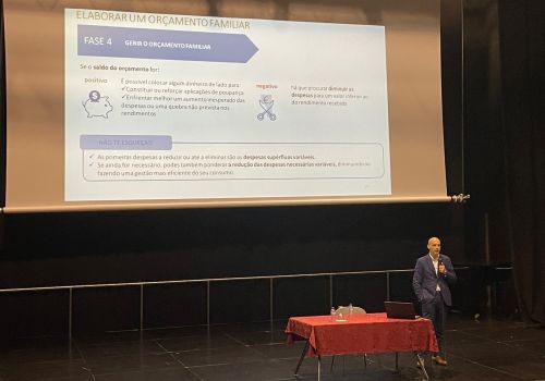 A primeira sessão, dedicada ao Tema I – Planeamento e Gestão do Orçamento Familiar, decorreu na passada terça-feira, dia 3 de dezembro, no Auditório Municipal de Cinfães, e contou com a participação dos alunos do 7.º ano de escolaridade.