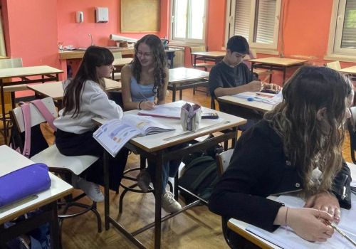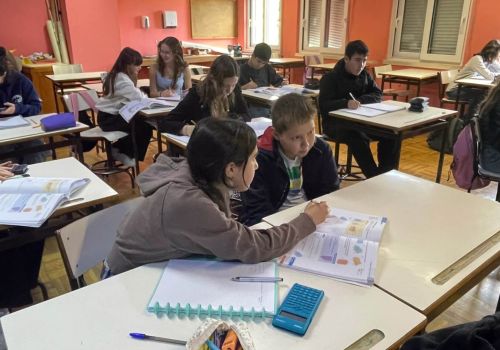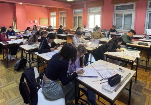 Após a receção na Biblioteca e a distribuição dos alunos pelas turmas anfitriãs, cada delegado de turma, acompanhado pelos colegas do 1.º ciclo, dirigiu-se à sala onde a respetiva turma estava a ter aulas.