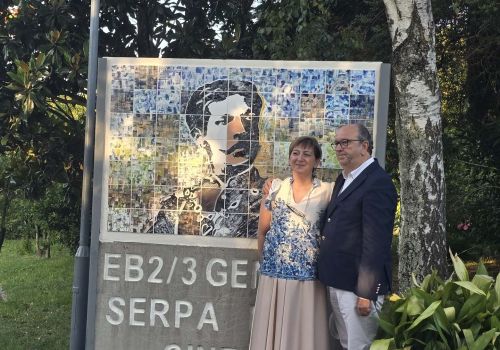 A entrada principal da escola sede conta agora com um painel de azulejos alusivo ao patrono do Agrupamento, o General Serpa Pinto.