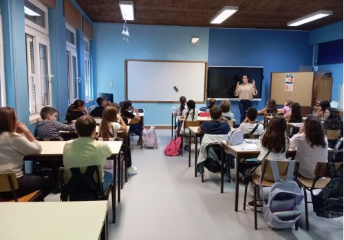 Para os alunos, realizou-se o momento “5.º Ano com Sentido”, que teve como objetivo apresentar o GAAF, os seus técnicos e os diferentes apoios que este serviço disponibiliza. Esta sessão foi também uma oportunidade para acolher e integrar os novos alunos na escola-sede, promovendo um ambiente de proximidade, confiança e bem-estar.