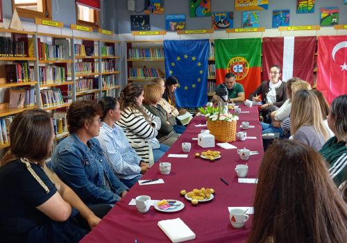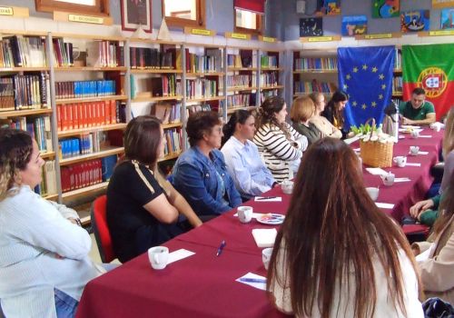 Simultaneamente, para os encarregados de educação, decorreu o “Café com Sentido”, um espaço informal de partilha de experiências, preocupações e expectativas relacionadas com a transição de ciclo e o processo de adaptação dos alunos. Entre café e bolachas, o diálogo fluiu num ambiente acolhedor, fortalecendo a ligação entre a escola e as famílias.