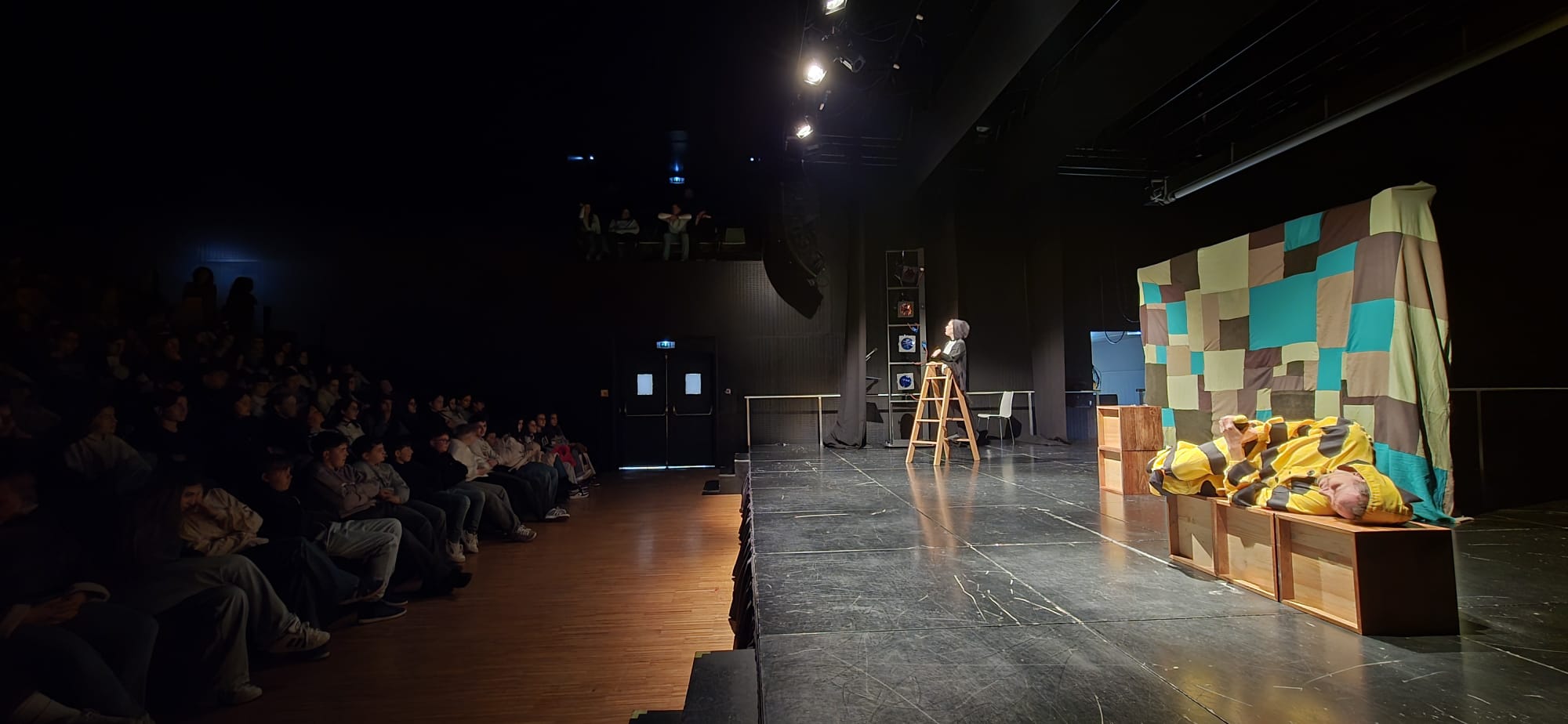 Em destaque, esteve a subida ao palco da companhia ETCETERA, que apresentou uma vibrante adaptação teatral da obra "O Gato Malhado e a Andorinha Sinhá", de Jorge Amado. Esta aula fora da sala de aula deu corpo aos objetivos traçados no Plano Anual de Atividades e aos conteúdos programáticos da disciplina de Português. Foi proporcionado aos alunos um contacto direto com a linguagem dramática, permitindo-lhes observar a transposição do texto literário para a performance cénica. Aprenderam sobre luz, som, interpretação e, acima de tudo, sobre a importância de respeitar as diferenças. Demonstraram um entusiasmo contagiante e um comportamento exemplar, participando ativamente na dinâmica criada pelos atores em palco.