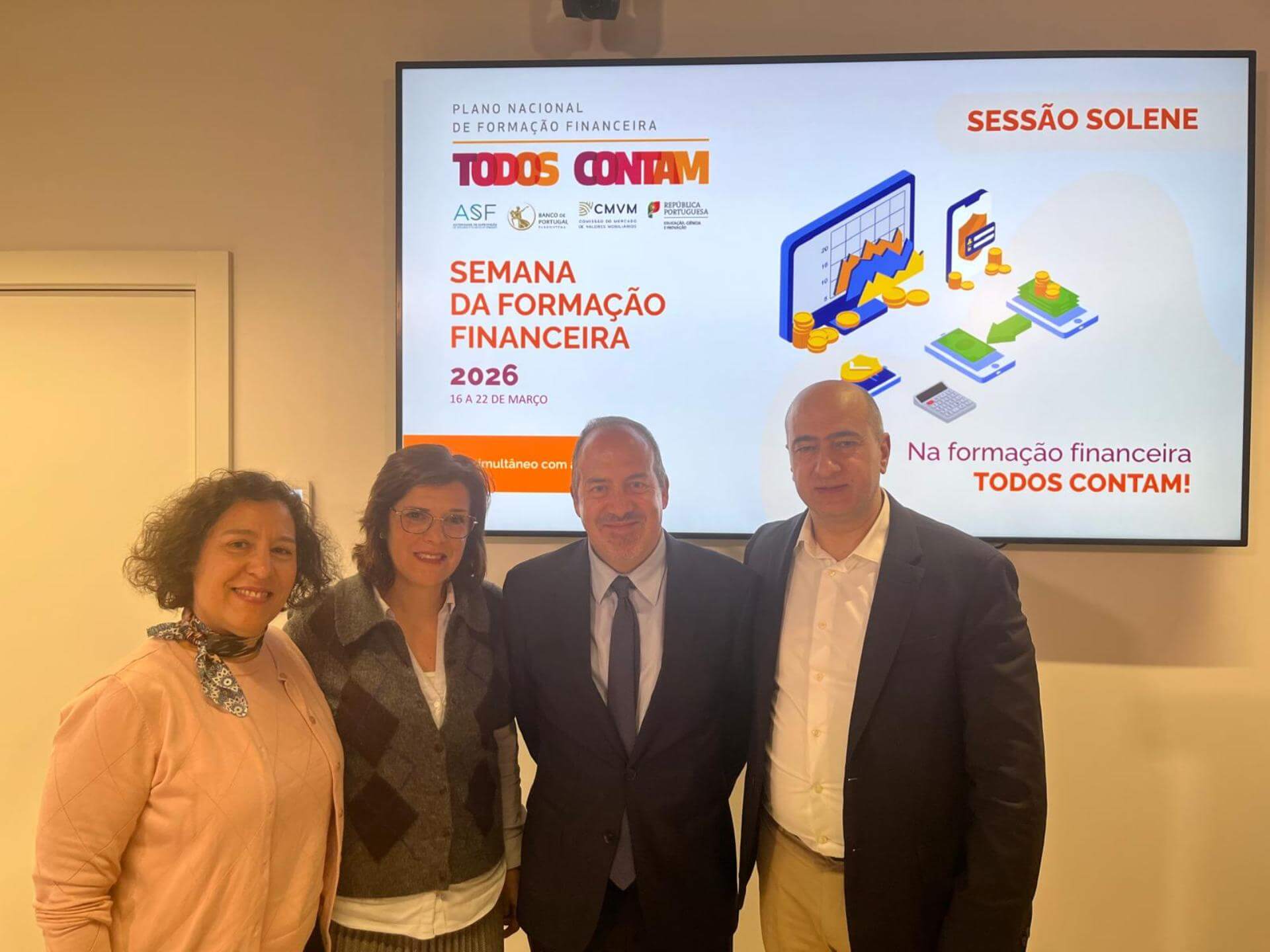 Na Sessão Solene da Semana da Formação Financeira, que decorreu em Lisboa, no passado dia 16 de março, o Agrupamento esteve representado pelo Diretor, Rui Botelho, e pelas professoras Irene Ramos e Sónia Ferreira, da equipa responsável pelo Plano de Educação Financeira.