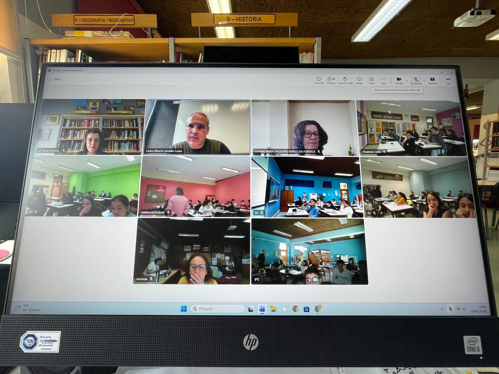 No âmbito deste conjunto de atividades, destacou-se a realização de uma sessão online dirigida aos alunos do 2.º ciclo, dinamizada pela Escola Superior de Tecnologia e Gestão de Lamego. A sessão contou com uma participação ativa e entusiástica dos alunos, que tiveram a oportunidade de aprofundar conhecimentos relacionados com a tomada de decisões financeiras de forma informada e responsável.
