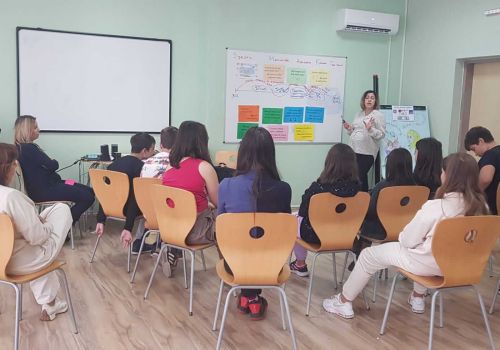 Durante estes dias realizaram jogos muito divertidos de “quebra gelo”, trabalhos de pares e grupos para melhor se conhecerem e, simultaneamente, explorarem aspetos de ambas as culturas como os alfabetos cirílico e latino e trava línguas.