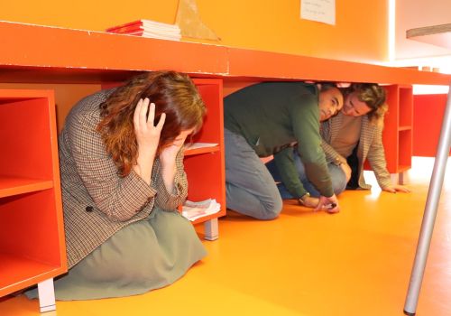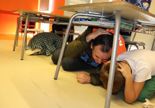 Chegada a hora, todos mostraram ter aprendido o significado de BAIXAR, PROTEGER E AGUARDAR. Com a calma restabelecida, todas as crianças de dirigiram, ordeiramente, para o Ponto de Encontro acordado.