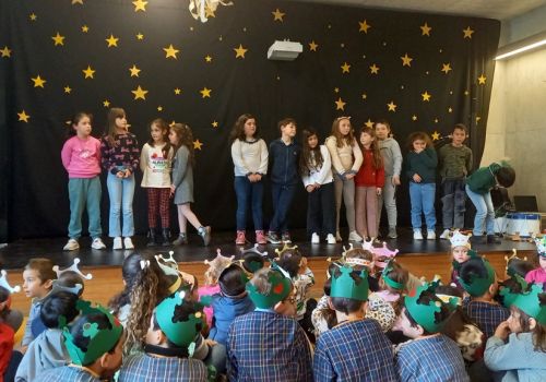 Após a atuação dos alunos com cantigas alusivas ao dia, e como estamos a celebrar o 50.º aniversário do 25 de abril, o 3º e 4º anos brindaram-nos com duas canções do cantor de intervenção Zeca Afonso. De salientar que nesse dia estiveram presentes os utentes do Centro Social e Bem-Estar de Oliveira do Douro a participar na festa.