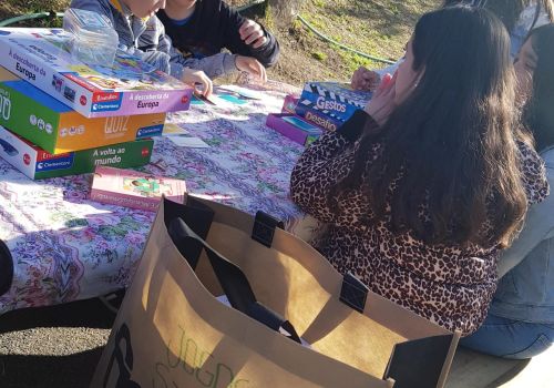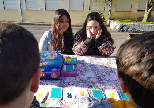 Sorriram uns raios de sol e a oportunidade de brincarmos nas novas mesas da escola! Estreámos a iniciativa “Vem jogar com o Staff Escolar”, que pretende criar momentos lúdicos, através de jogos didáticos adquiridos recentemente.