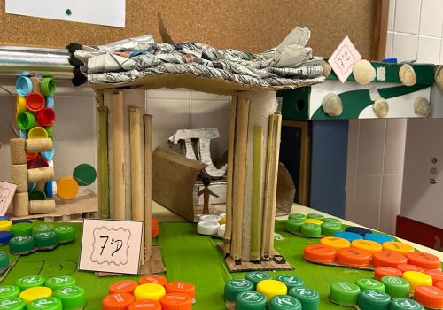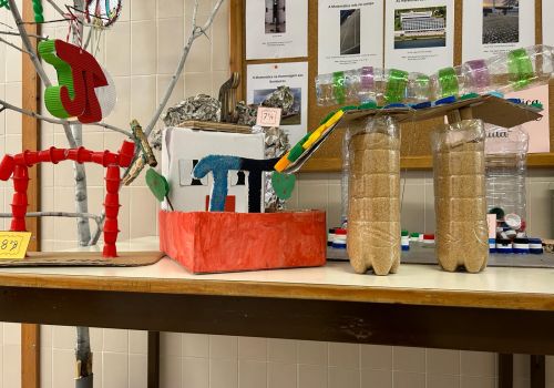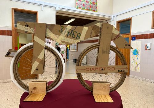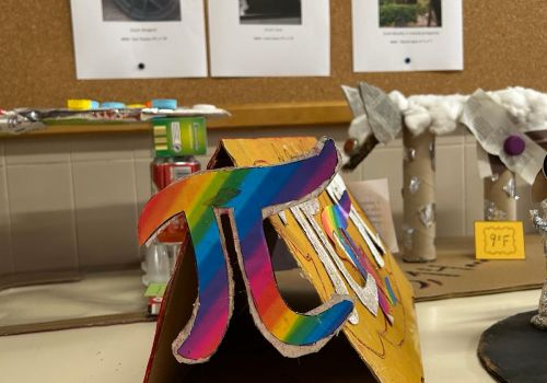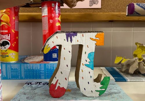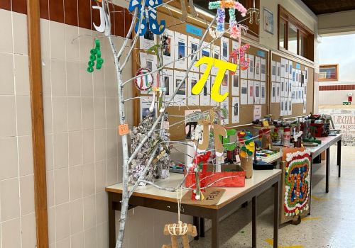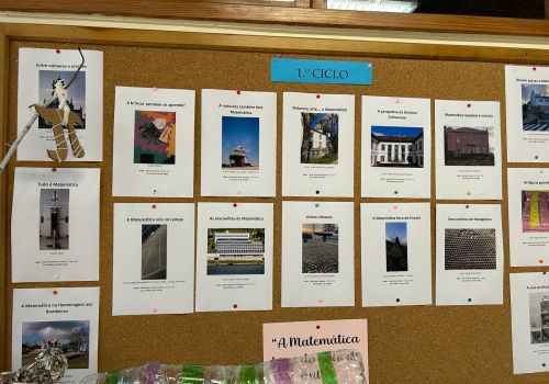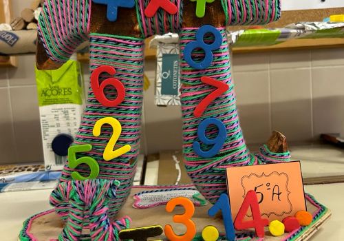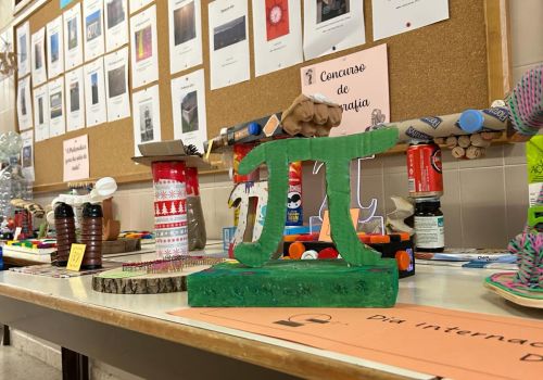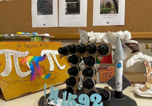 Os professores de Matemática do 2.º e 3º ciclos promoveram ainda a comemoração do Dia Internacional do Pi, desafiando os seus alunos a elaborarem, em cada turma e com a reutilização de materiais, um modelo 3D do símbolo Pi.