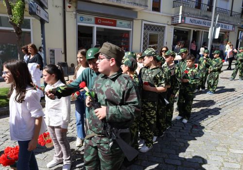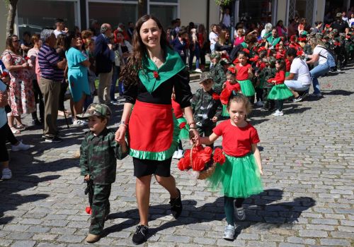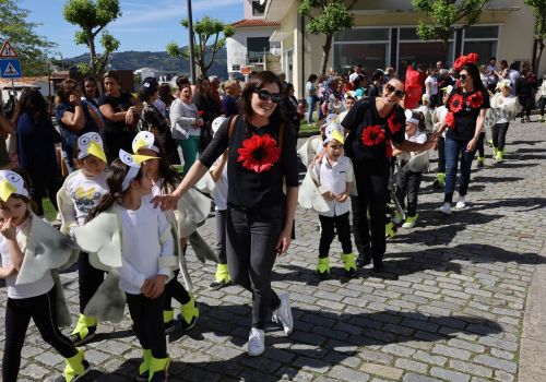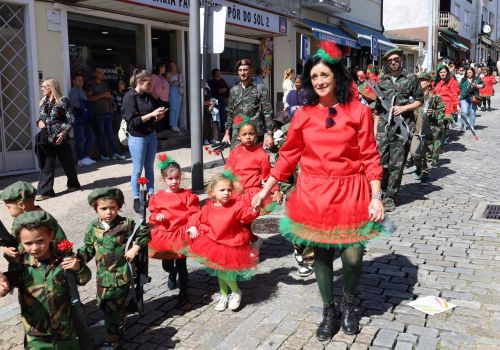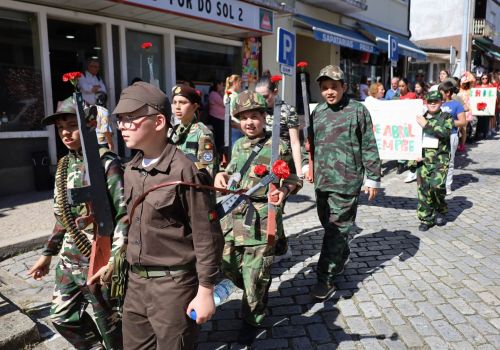 O evento, promovido pelo Município, contou com mais de 2000 participantes vindos das escolas e outras instituições do concelho, que se uniram para celebrar o cinquentenário da Revolução dos Cravos.<br>