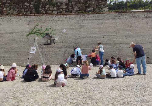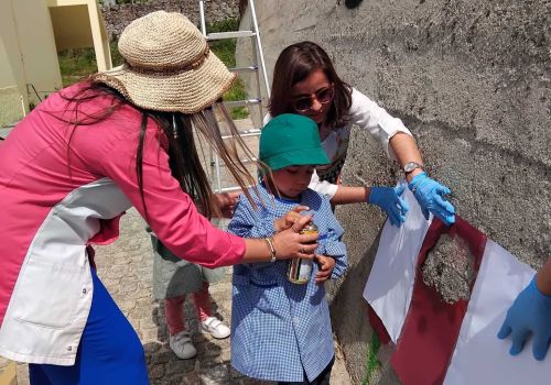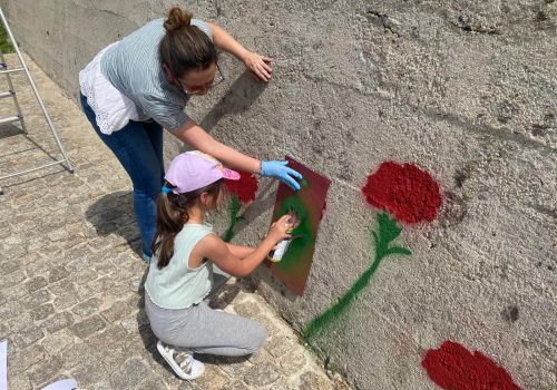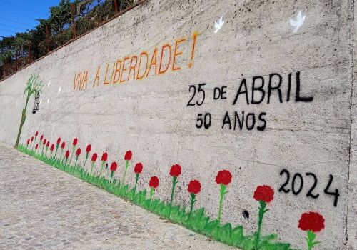 Nele ficaram representados símbolos alusivos à liberdade, bem como um conjunto de 25 cravos, flor associada ao dia da revolução. Para finalizar esta atividade, os alunos entoaram as canções icónicas desta época.
