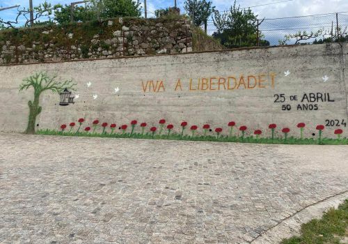 Dando continuidade às comemorações do cinquentenário do 25 de Abril, os alunos, professores e assistentes operacionais da Escola Básica de Louredo elaboraram um mural para assinalar esta data.