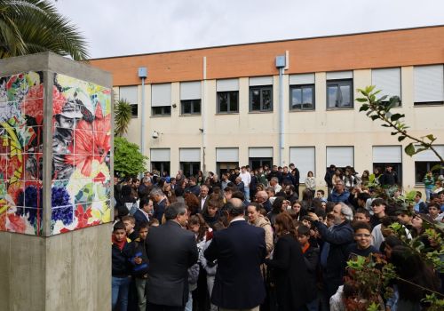 O programa comemorativo da Revolução dos Cravos que o Agrupamento levou a cabo culminou, hoje, com a inauguração de um padrão alusivo ao 25 de Abril, numa cerimónia que juntou alunos, pessoal docente e não docente, Conselho Geral, Assembleia Municipal, presidentes das Juntas de Freguesia do concelho e Executivo Camarário na celebração da liberdade e da democracia.