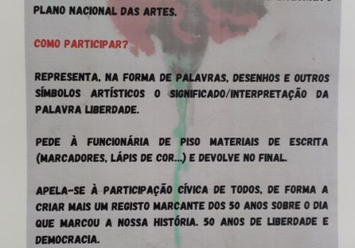 Esta iniciativa pretendeu promover valores de cidadania e vitalidade democrática, convidando alunos, professores e funcionários a representar na forma de palavras, desenhos e outros símbolos artísticos o significado/interpretação da palavra LIBERDADE.