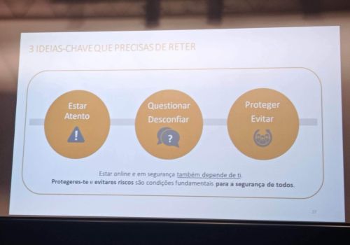Foi uma sessão muito interessante, que, mais uma vez, alertou os jovens para a importância de serem muito cuidadosos quando utilizam canais digitais, responsabilizando-os também por levar os conhecimentos que adquiriram para as famílias, nomeadamente para pais e avós menos conhecedores destes perigos, ajudando, assim, um segmento da população considerado mais vulnerável em questões desta natureza.
