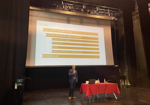 Nesta sessão, dedicada ao “Tema 3 – Segurança Online”, estiveram presentes, mais uma vez, os alunos do 7.º ano de escolaridade que, desta forma, adquiriram mais conhecimento sobre os diversos tipos de fraude online e os cuidados a ter na utilização dos canais digitais.