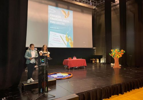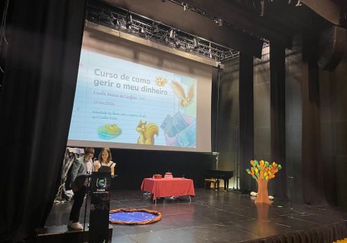 No âmbito do Plano de Educação Financeira do nosso Agrupamento, decorreu, no dia 28 de maio, no Auditório Municipal de Cinfães, uma sessão de Formação Financeira para Pais, subordinada ao tema “Educação Financeira Digital para Adultos”, dinamizada por colaboradores da Agência de Viseu do Banco de Portugal e apresentada pelo Rodrigo e pela Isabel, alunos do 4.º Ano da Escola Básica de Cinfães.