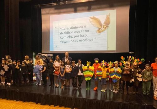 O segundo momento da sessão – e o mais aguardado pelos respetivos pais – foi a apresentação da dramatização “Como gerir o meu dinheiro”, adaptada do livro com o mesmo título e preparada também pelos alunos do quarto ano de Cinfães, que se mostraram verdadeiros artistas, dominando o palco e encantando todos os presentes com a sua magnífica prestação.