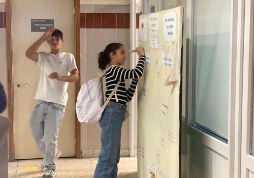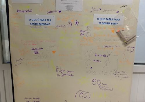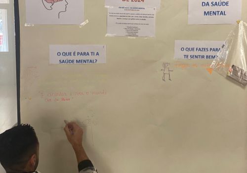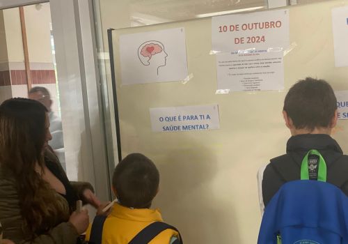 Foi promovida uma atividade de sensibilização através de um cartaz onde toda a comunidade educativa teve a oportunidade de obter informações sobre a temática e também dar o seu contributo, respondendo às questões: “O que é a saúde mental?” e “O que fazem para se sentirem bem?”, tanto através da escrita, como através de desenhos.