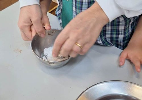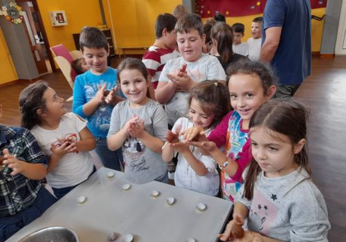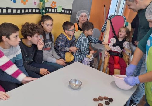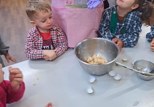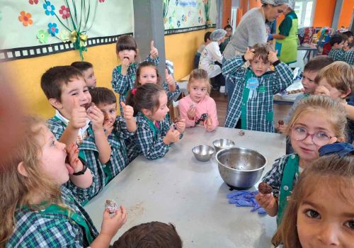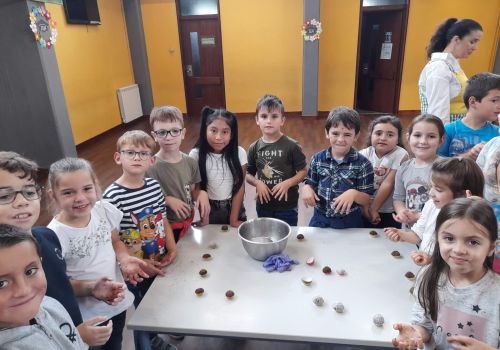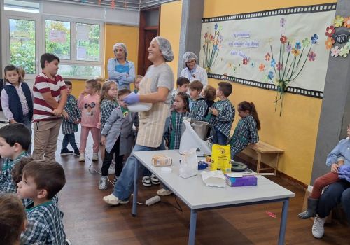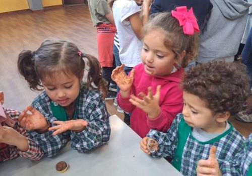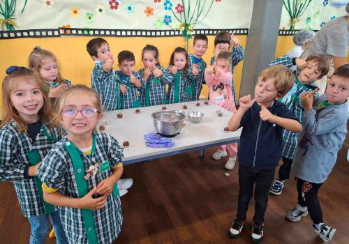 Posteriormente, cada grupo de alunos confecionou a receita de um brigadeiro saudável, em que o principal ingrediente foi a maçã, fruta oferecida pelas famílias.