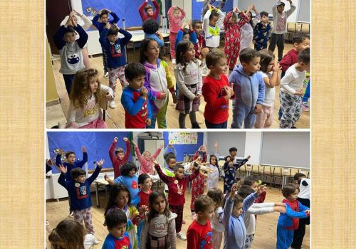 Neste dia, os meninos vestidos com o seu pijama divertiram-se muito.